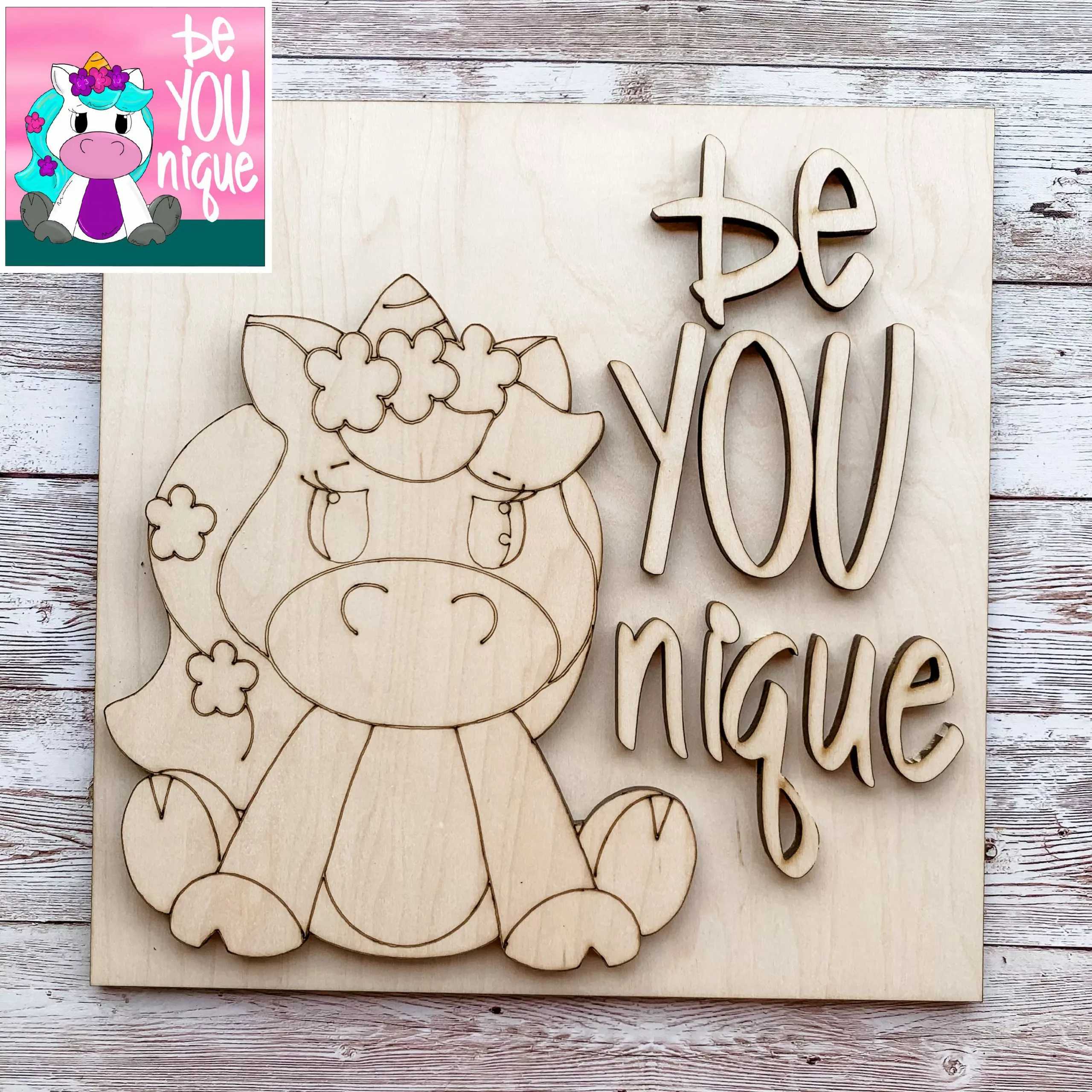 Unicorn, Be YOUnique Door hanger. measures 11 x 11. Etched and layered.