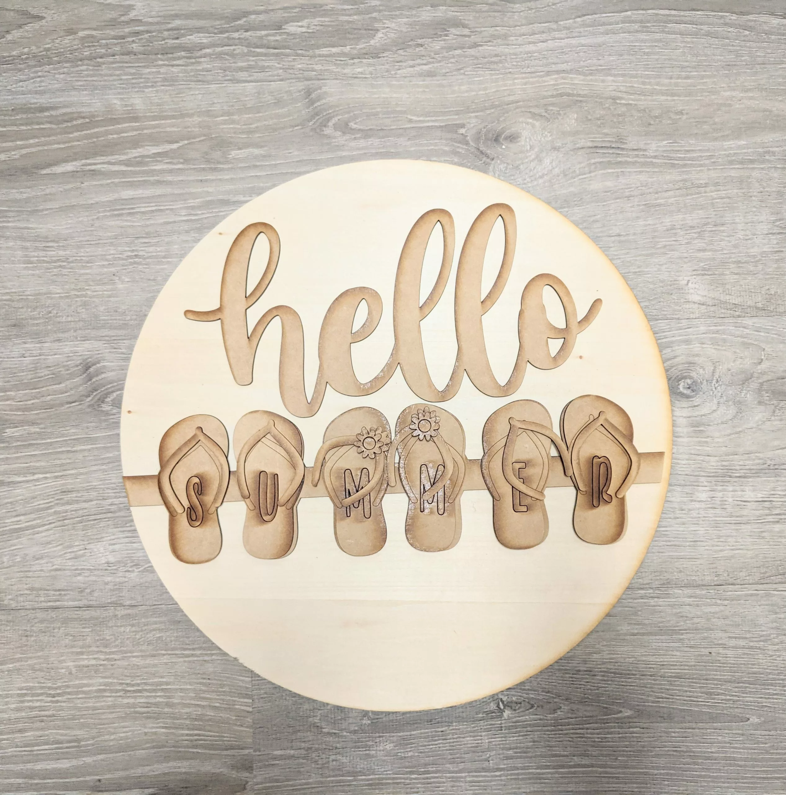 This will come with the word Hello and the season of your choice. Seasons is layered design. Cut in 1/4 baltic Birch wood.