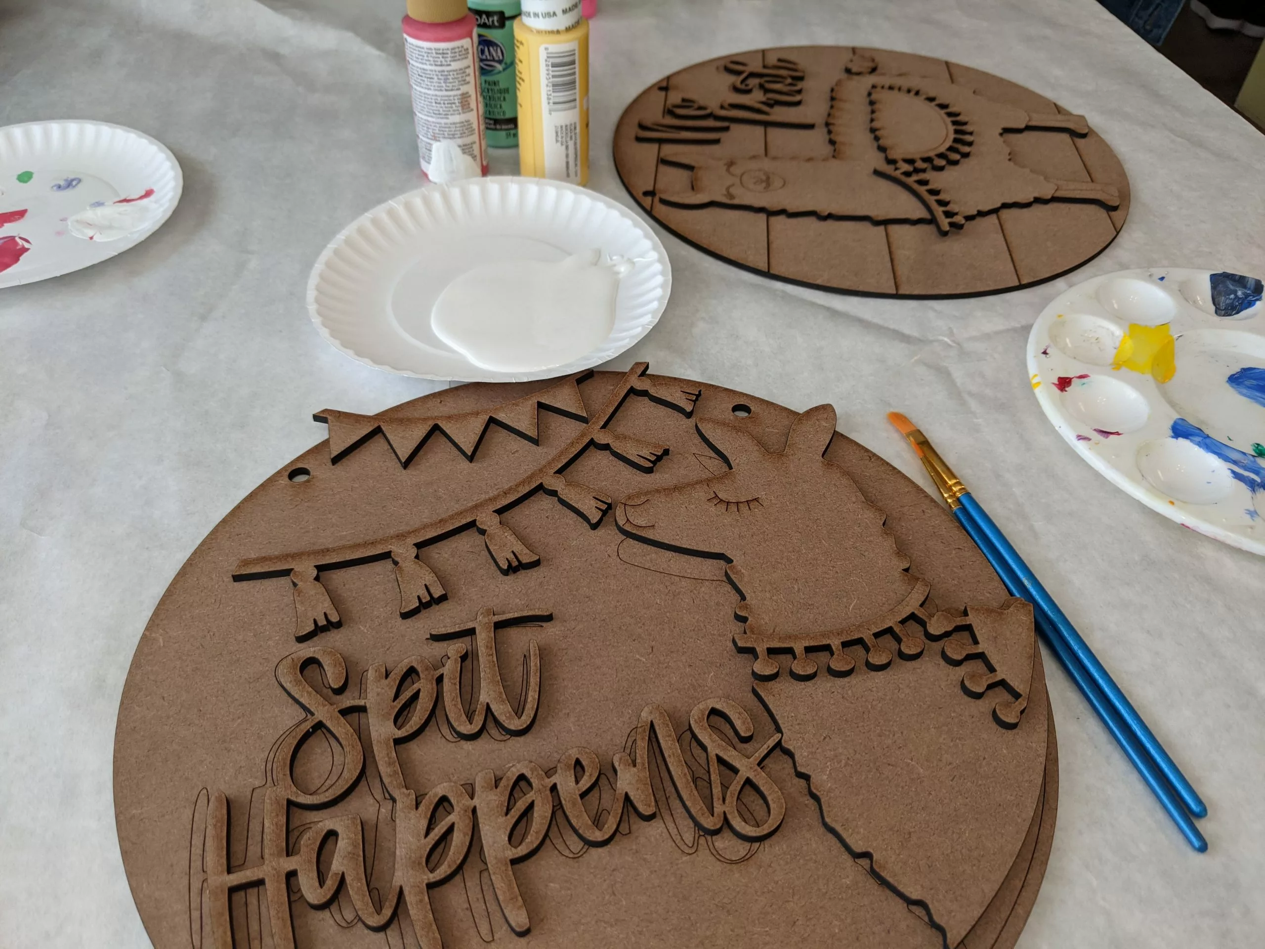 Llama Spit happens door hanger. Cut in 1/4 birch wood.