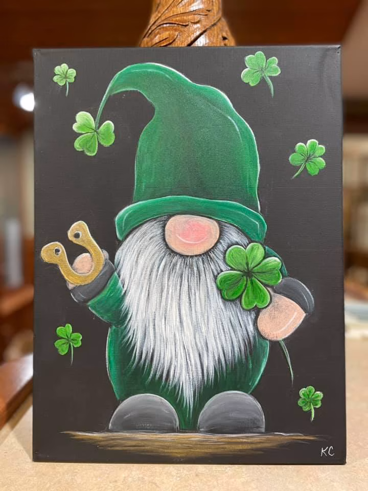 Come celebrate St. Patrick’s Day with us! I’ll walk you through painting your very own St. Patty’s Gnome from start to finish. No experience needed — seriously, none. Come solo or bring your people, and wear something green! BYOB and snacks welcome.