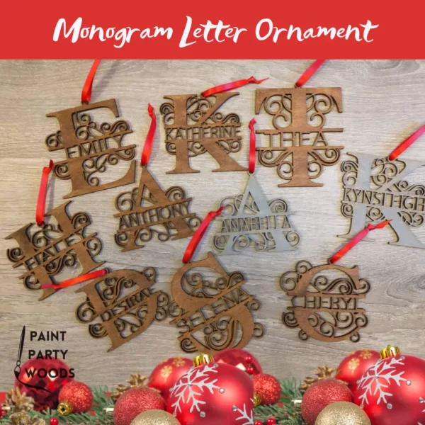 Cut in 1/4 birch wood. Measures 3.5 in height. Each letter will vary in width.