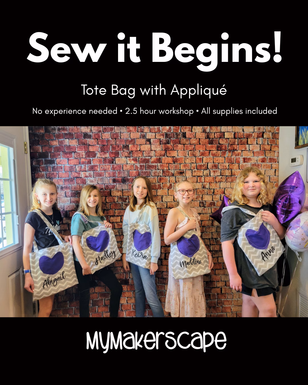 No sewing experience needed. We’ll start with a quick 35 minute intro covering machine safety and parts, then jump into sewing your very own tote bag with appliqué.