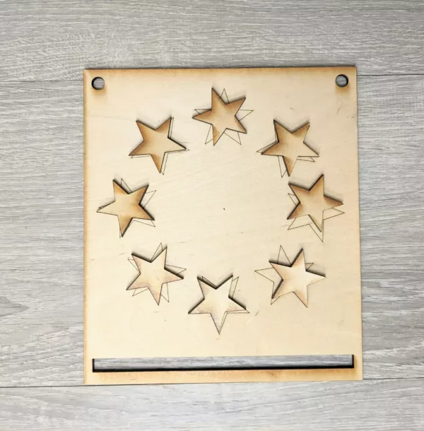 Cut in 1/4 Birch wood and measures 8 x 9.