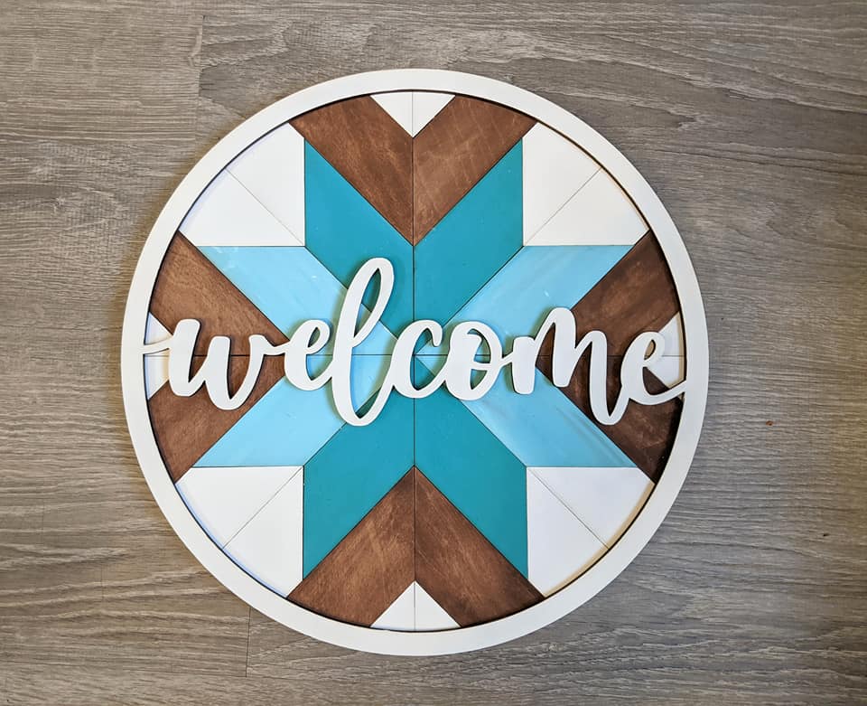 This comes in 3 layers – the backer, the quilt pieces and the welcome sign frame.